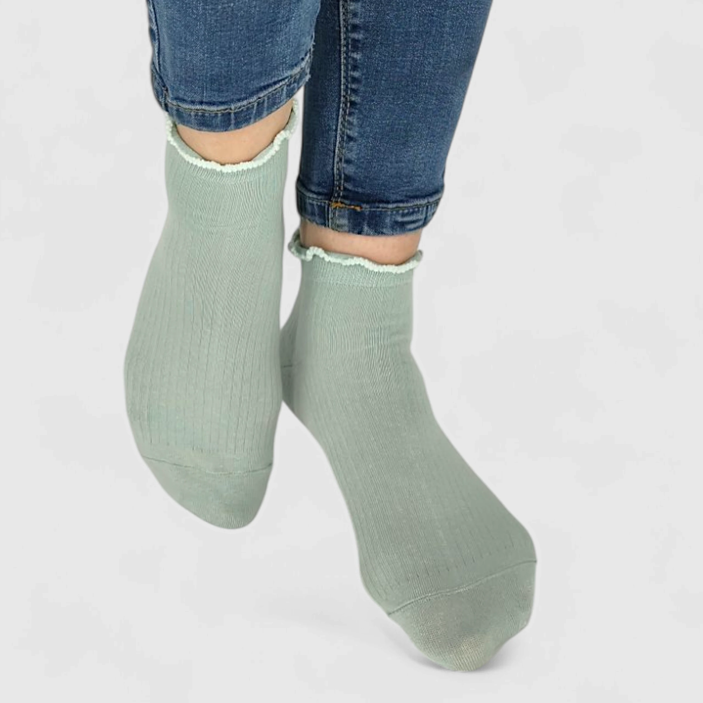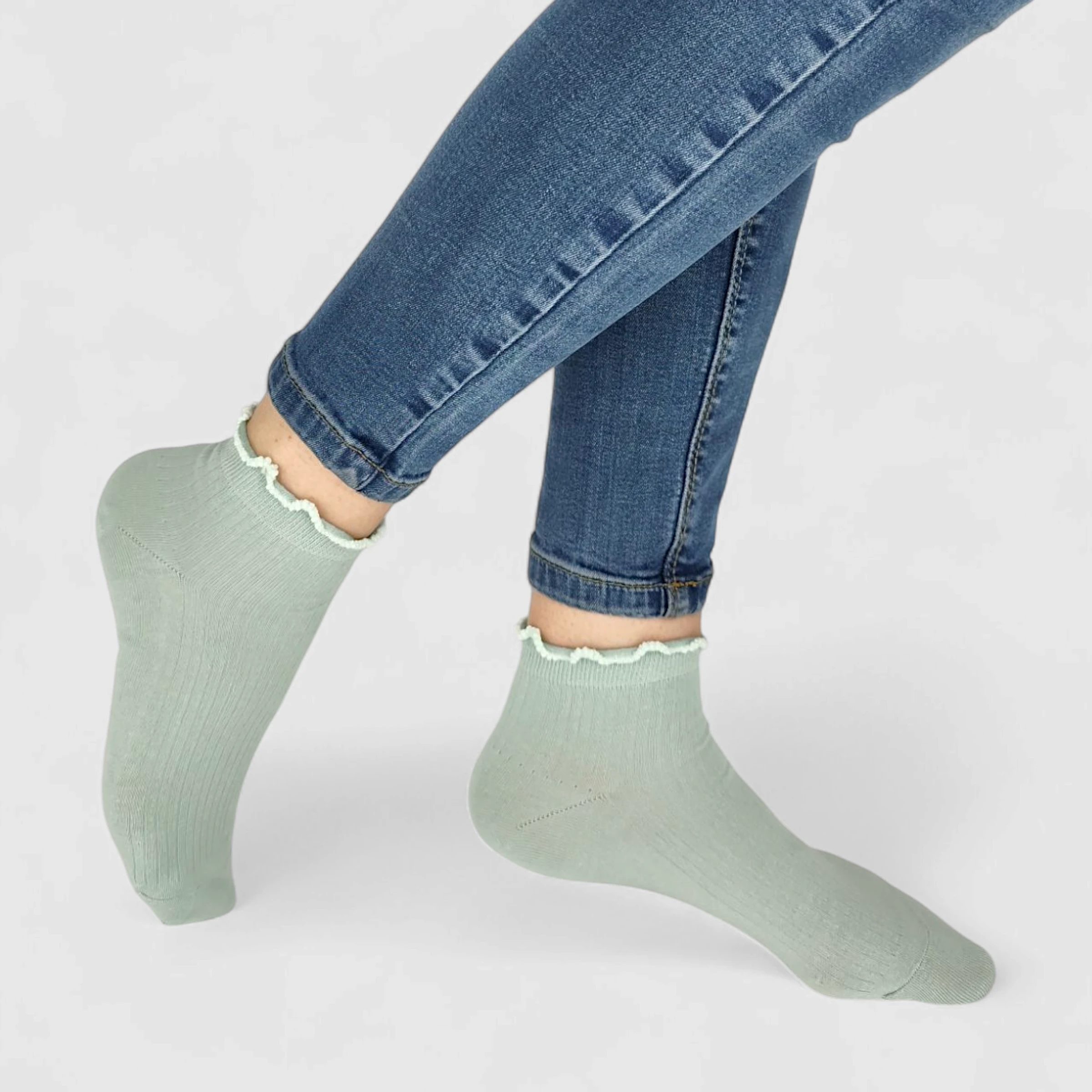 Skarpetki damskie z falbanką limonkowe