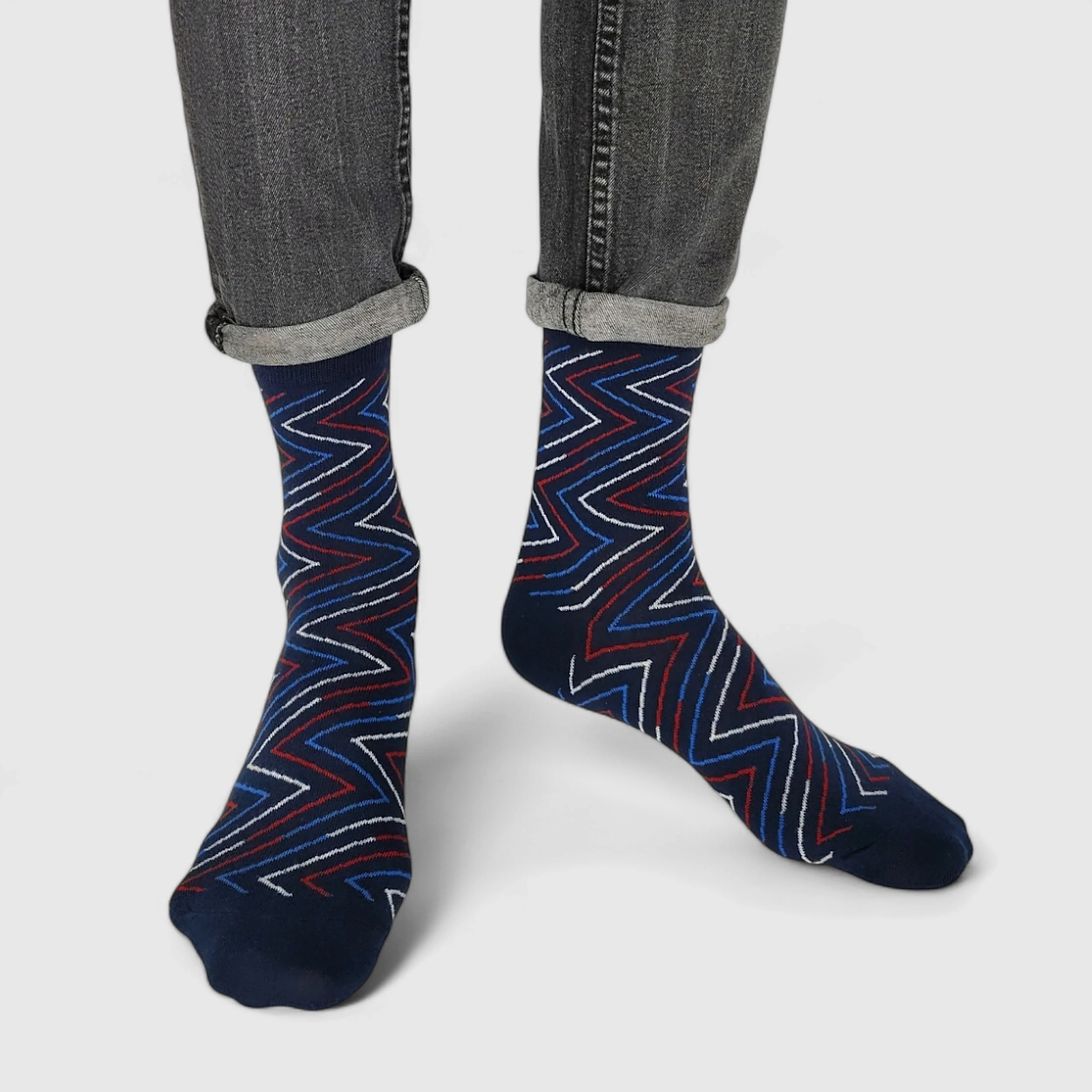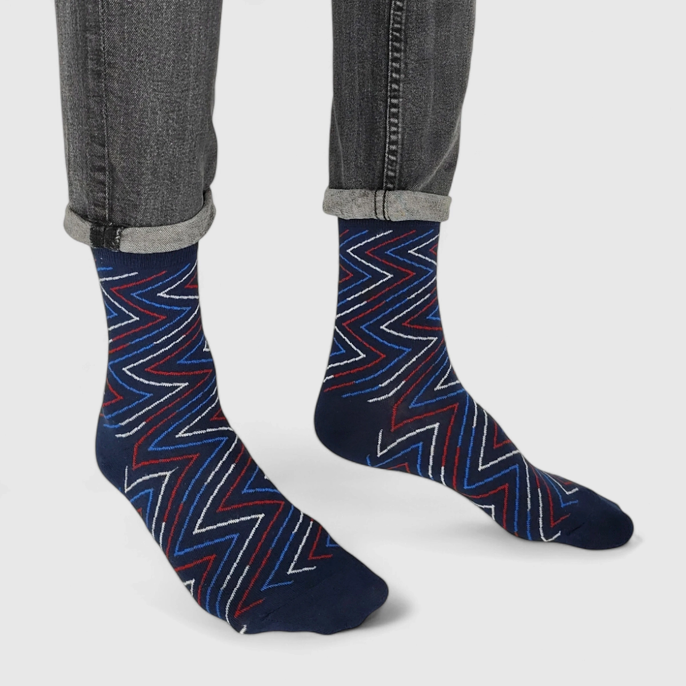 Stylowy wzór zygzaka dodaje energii i nowoczesnego charakteru, doskonale pasując do zarówno casualowych, jak i bardziej formalnych stylizacji. Elastyczny ściągacz zapewnia idealne dopasowanie, nie uciskając nogi, a bawełniany materiał pozwala skórze oddychać, minimalizując ryzyko podrażnień i zapewniając komfort przez cały dzień.