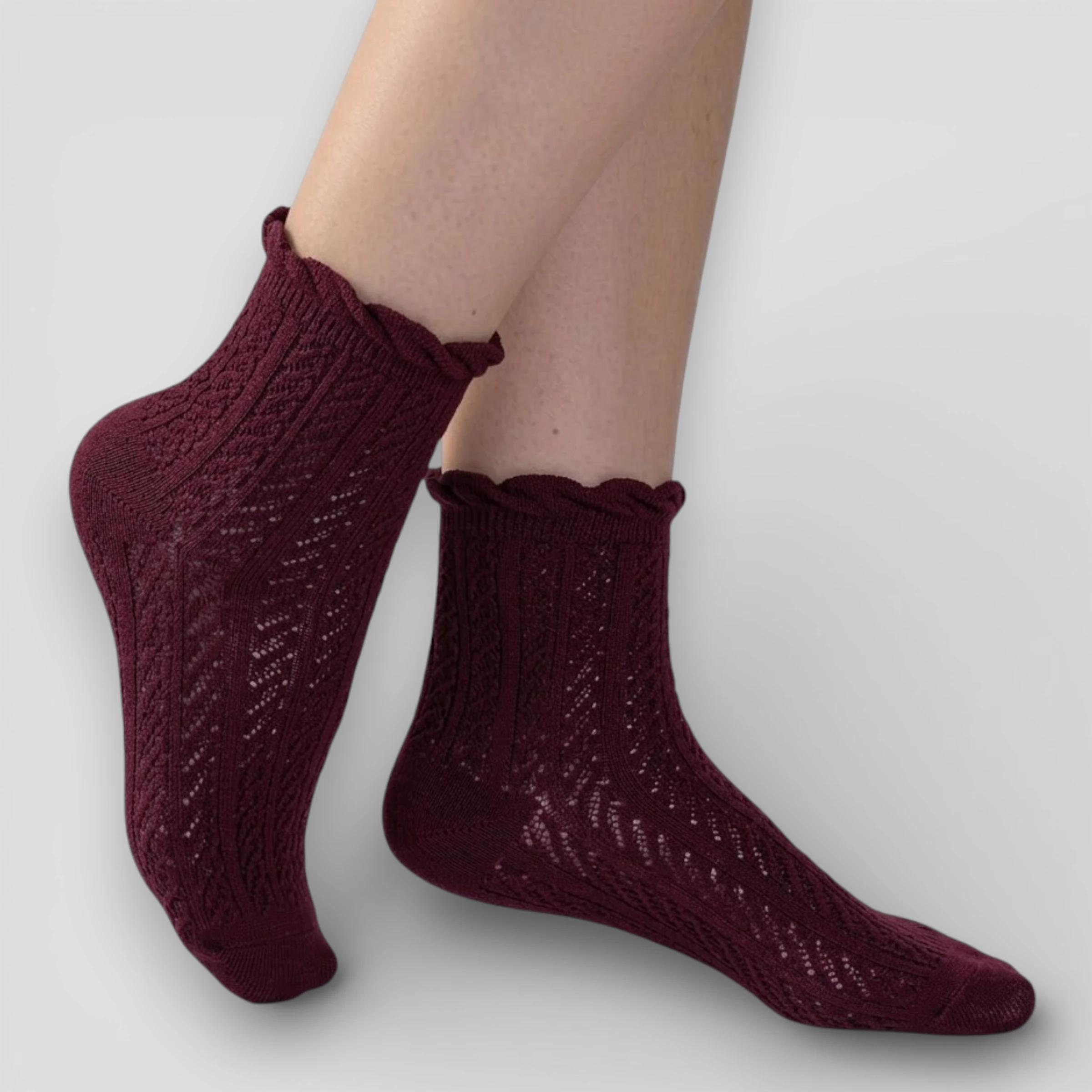 Skarpety ażurowe damskie burgund